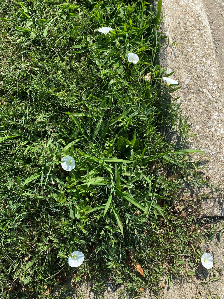 I was taking a walk when I saw some white flowers that seemed to come out of the rocks, concrete and crabgrass. Morning Glorys. I started to wonder about the strength of that plant. Think about the strength that it takes for delicate flowers to break through concrete and gravel.